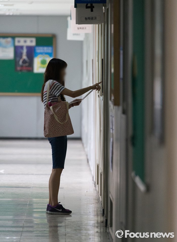 (인천=포커스뉴스) 2016년 제2회 지방공무원 임용 필기시험이 실시된 18일 오전 인천 연수구 청학공업고등학교에서 한 수험생이 시험실 자리를 확인하고 있다.