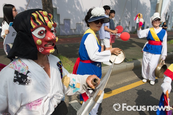 (서울=포커스뉴스) 18일 오후 서울 마포구 평화의 공원에서 열린 '호국보훈 땡큐퍼레이드'에 참가한 시민들이 행진하고 있다.
