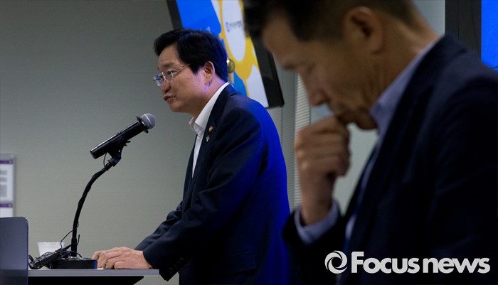 (양평=포커스뉴스) 17일 오후 경기 양평 강하면 블룸비스타에서 열린 2016년도 한국선주협회 사장단 연찬회에서 김영석(왼쪽) 해양수산부 장관이 축사를 하고 있다. 오른쪽은 김영무 한국선주협회 부회장.