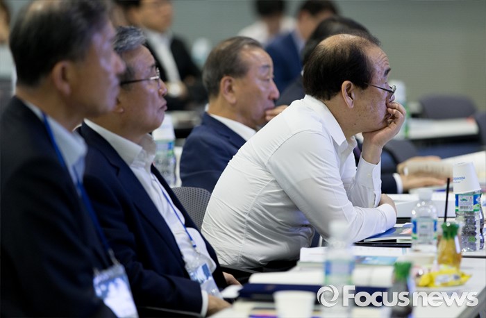 (양평=포커스뉴스) 17일 오후 경기 양평 강하면 블룸비스타에서 열린 2016년도 한국선주협회 사장단 연찬회에서 외항해운업계 사장단과 수출입은행, 한국해양수산개발원(KMI) 관계자들이 2016년 상반기 사업보고를 경청하고 있다.