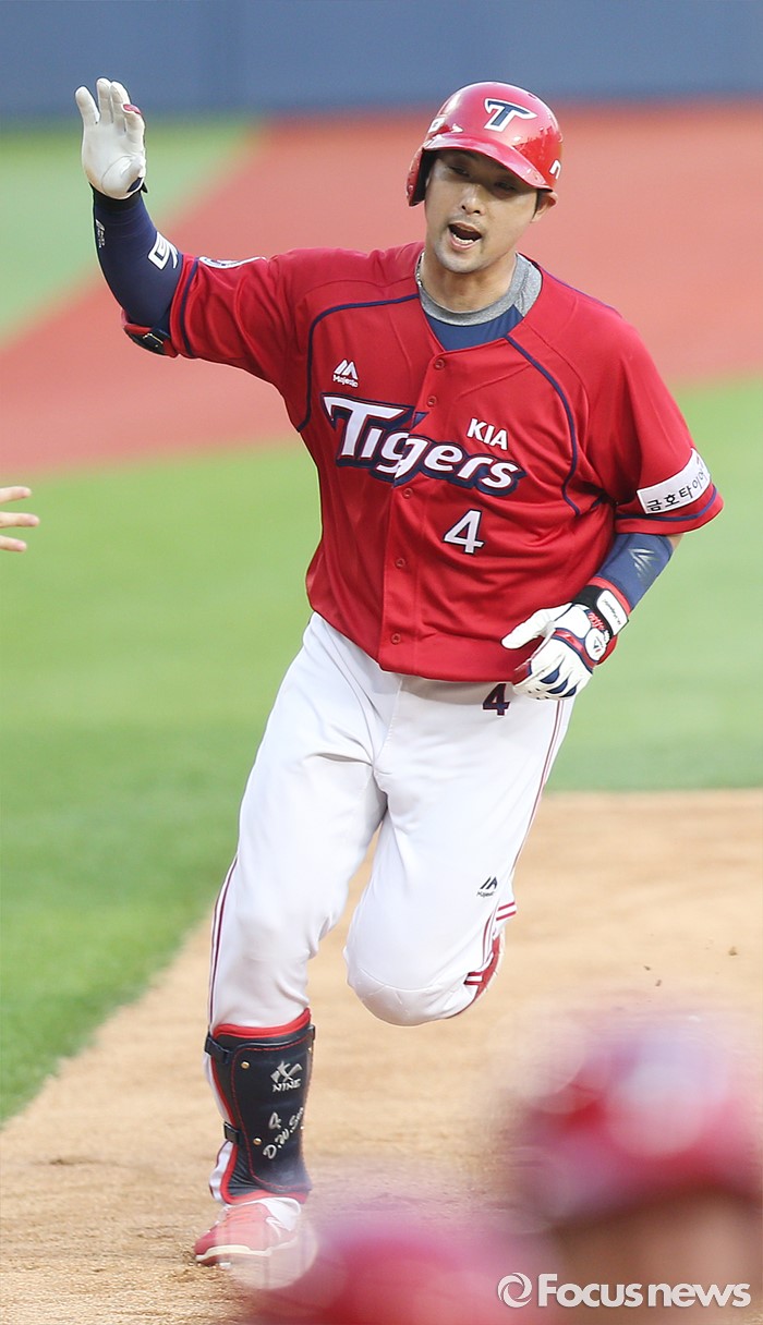 (서울=포커스뉴스) 19일 서울 잠실구장에서 열린 2016 프로야구 KIA-LG 경기 6회초 2사후 KIA 서동욱이 우중월 만루 홈런을 치고 3루를 돌아 홈인하고 있다.