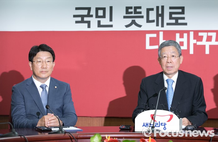 (서울=포커스뉴스) 20일 오전 서울 여의도 새누리당사에서 열린 혁신비상대책위원회의에 참석한 김희옥 혁신비대위원장이 모두발언을 하고 있다. 왼쪽은 권성동 사무총장.