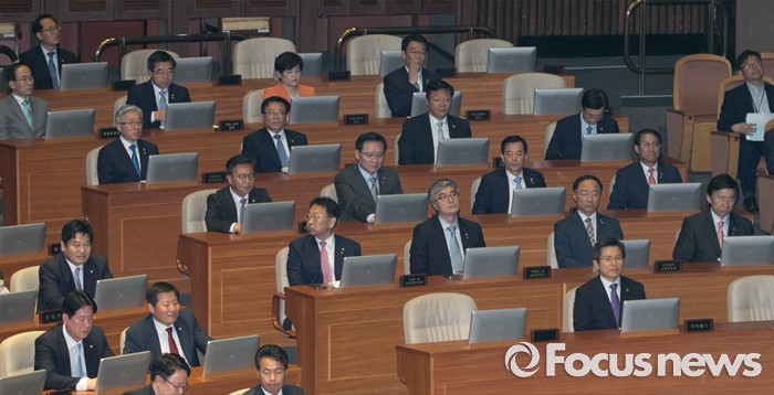 (서울=포커스뉴스) 20일 오전 서울 여의도 국회에서 열린 343회 국회(임시회) 3차 본회의에 참석한 황교안 국무총리 등 국무위원들이 자리하고 있다.