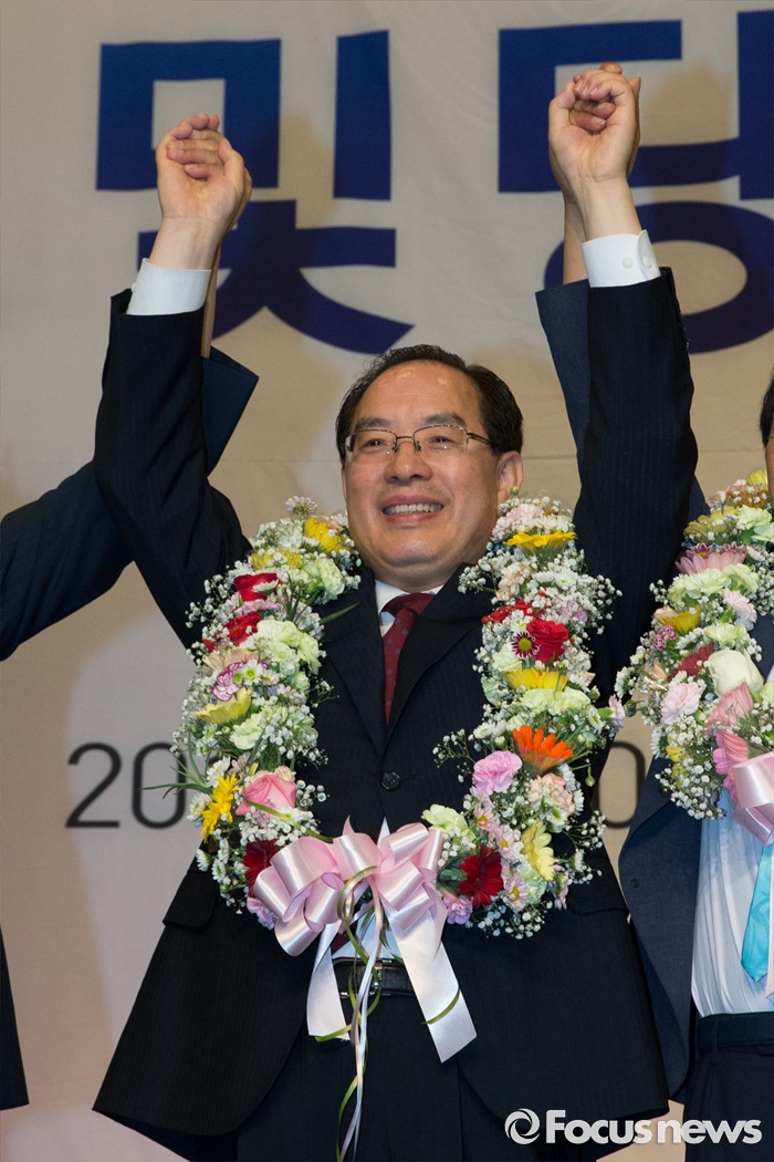 | △ 기뻐하는 하윤수 신임 회장 |