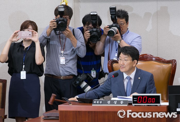 (서울=포커스뉴스) 20일 오전 서울 여의도 국회에서 열린 법제사법위원회 전체회의에 참석한 권성동 위원장이 안견 의결을 하고 있다.