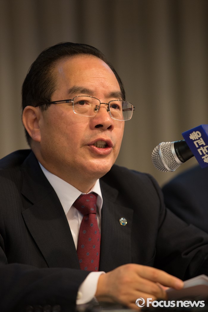 (서울=포커스뉴스) 20일 오전 서울 서초구 한국교원단체총연합회에서 열린 제36대 한국교총 회장선거에 선출된 하윤수 부산교대 총장이 인사말을 하고 있다.