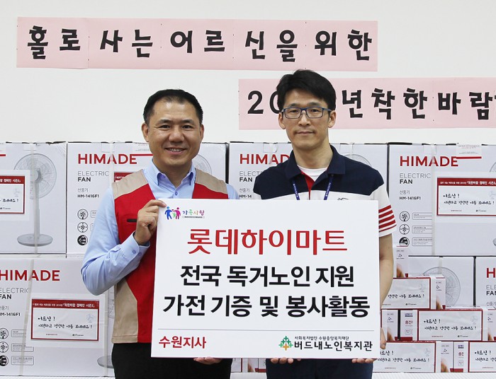 '롯데하이마트 샤롯데 봉사단' 400여명은 더위에 지치기 쉬운 홀몸 어르신들을 위해 오는 30일까지 전국 22개 지역의 독거노인 복지 기관을 방문, 가전제품을 전달하고 봉사활동을 펼친다. 선풍기와 안마기 등 2300만원 상당의 가전제품을 전달하는 한편, 배식과 청소, 나들이 등의 활동도 진행한다.