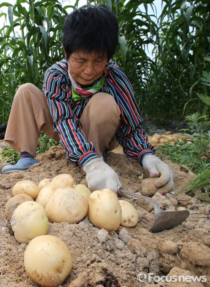 감자 수확하는 농민