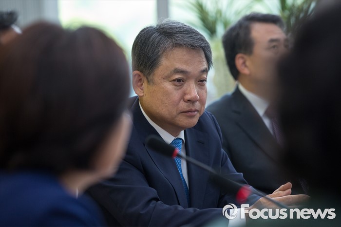 (서울=포커스뉴스) 정진행 현대자동차 사장이 21일 오전 서울 여의도 국회에서 열린 '정의당 광폭경청'에 참석해 심상정 정의당 상임공동대표의 모두발언을 경청 하고 있다.