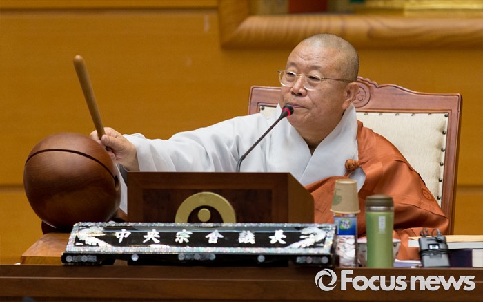 (서울=포커스뉴스) 21일 오전 서울 종로구 한국불교역사문화기념관에서 열린 제206회 조계종 중앙종회 임시회의에서 조계종 중앙종회의장 성문 스님이 개회사를 하고 있다. 이번 중앙종회 임시회에서는 총무원장 선출제도를 집중적으로 다룰 예정이다.