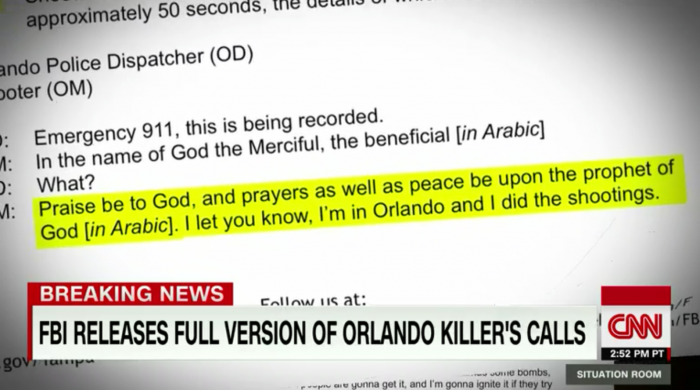 FBI는 "오마르 마틴은 IS 등 테러단체에 직접 몸담지는 않았다. 미국에서 홀로 활동하는 자생적 테러리스트 '외로운 늑대'였던 것으로 추정된다"고 분석했다.미국연방수사국(FBI)이 20일(현지시간) 공개한 올랜도 게이클럽 총기난사 사건 테러범과 911의 범행 중 통화 전문. <사진출처=미국 CNN 영상 갈무리>