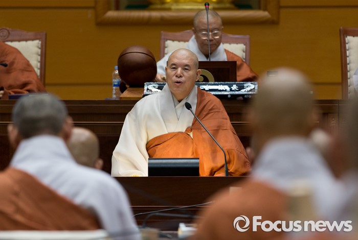 (서울=포커스뉴스) 21일 오전 서울 종로구 한국불교역사문화기념관에서 열린 제206회 조계종 중앙종회 임시회의에서 조계종 총무원장 자승 스님이 인사말을 하고 있다. 이번 중앙종회 임시회에서는 총무원장 선출제도를 집중적으로 다룰 예정이다.