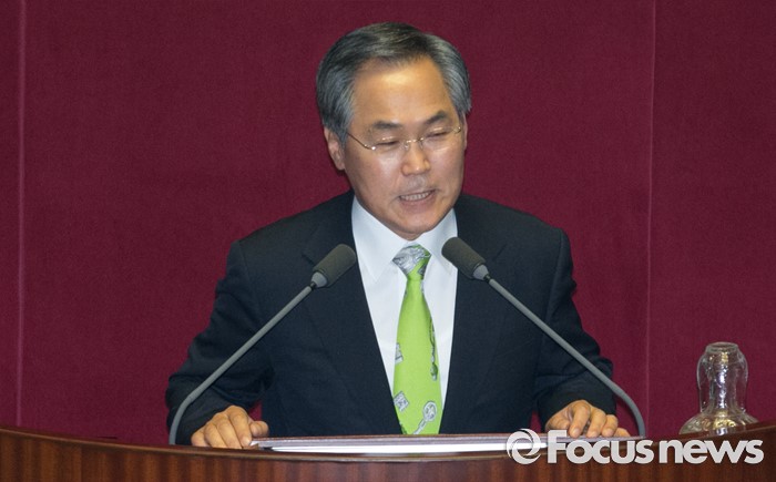 (서울=포커스뉴스) 21일 오전 서울 여의도 국회에서 열린 343회 국회(임시회) 4차 본회의에 참석한 우윤근 신임 국회 사무총장이 인사말을 하고 있다.