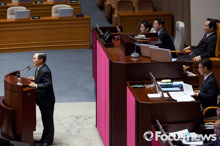 (서울=포커스뉴스) 우윤근 국회 사무총장이 21일 오전 서울 여의도 국회에서 열린 본회의에 참석해 선출 소감을 발표하고 있다.