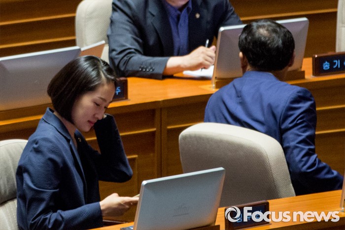 (서울=포커스뉴스) 김수민 국민의당 의원이 21일 오전 서울 여의도 국회에서 열린 본회의에 참석해 국회사무총장 임명승인안 투표를 기다리고 있다.
