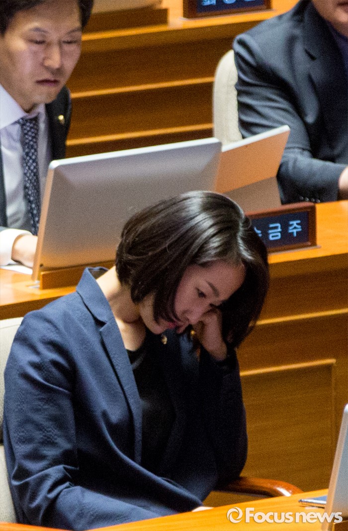 (서울=포커스뉴스) 김수민 국민의당 의원이 21일 오전 서울 여의도 국회에서 열린 본회의에 참석해 국회사무총장 임명승인안 투표를 기다리고 있다.