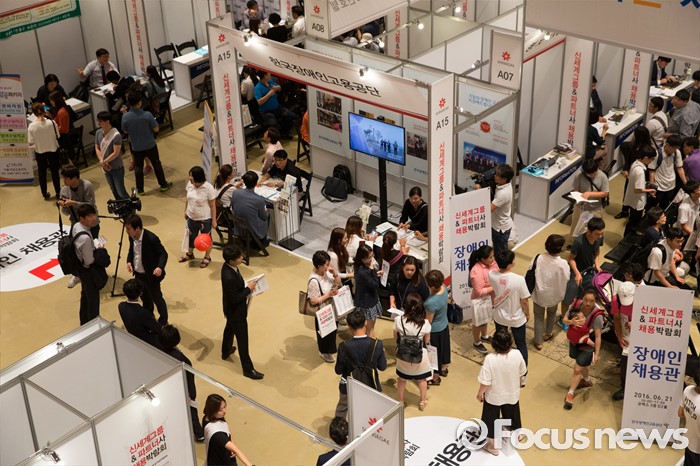 (서울=포커스뉴스) 21일 오후 서울 강남구 코엑스 D2홀에서 열린 신세계그룹&파트너사 채용박람회에서 구직자들이 희망 부스를 둘러보고 있다.