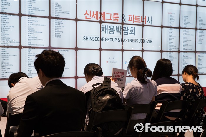 (서울=포커스뉴스) 21일 오후 서울 강남구 코엑스 D2홀에서 열린 신세계그룹&파트너사 채용박람회에서 구직자들이 상담을 기다리고 있다.