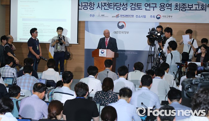 (세종=포커스뉴스) 장 마리 슈발리에 프랑스 파리공항공단자회사 ADPi 수석엔지니어가 21일 오후 세종시 정부세종청사 국토교통부 브리핑실에서 열린 동남권 신공항 타당성 검토 연구 최종 보고회에서 입지선정 결과를 발표하고 있다.