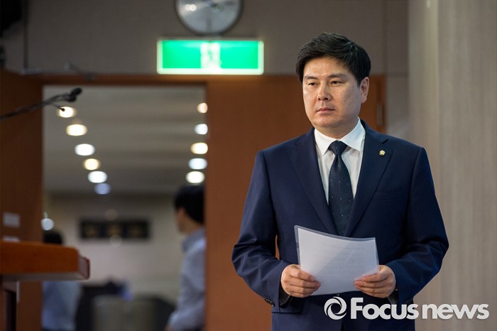 (서울=포커스뉴스) 지상욱 새누리당 대변인이 21일 오후 서울 여의도 국회에서 신공항 입지 선정관련 입장발표를 하기 위해 기자회견장으로 들어서고 있다.