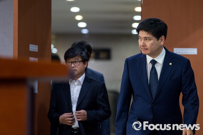 (서울=포커스뉴스) 지상욱 새누리당 대변인이 21일 오후 서울 여의도 국회에서 신공항 입지 선정관련 입장발표를 하기 위해 기자회견장으로 들어서고 있다.