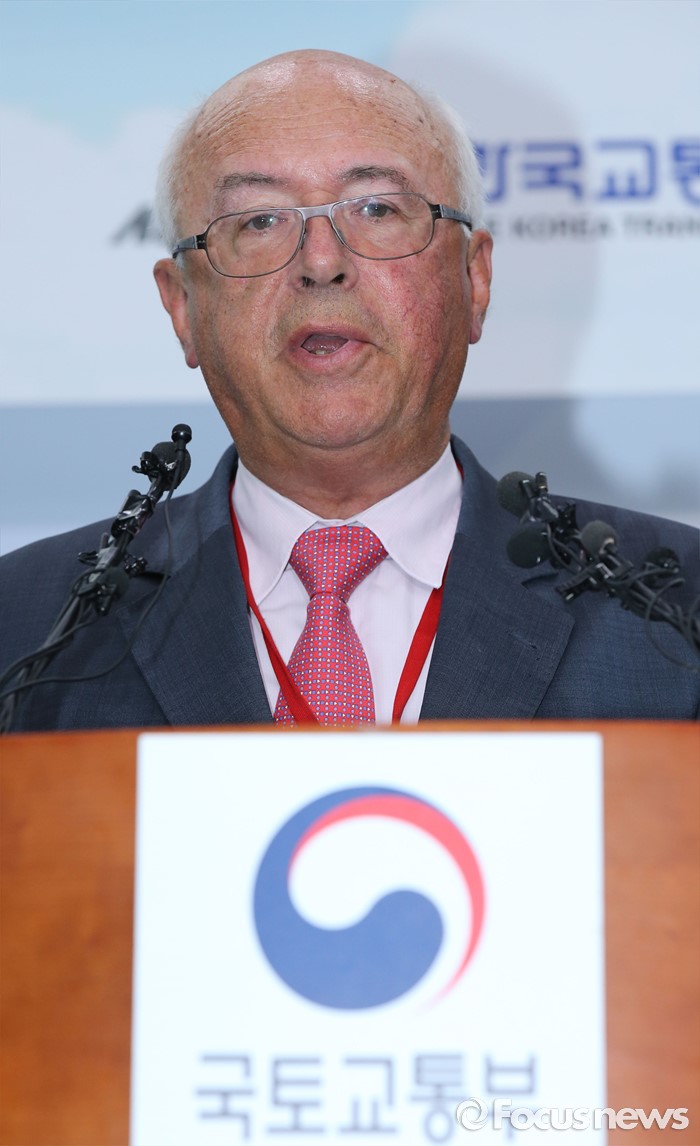 (세종=포커스뉴스) 장 마리 슈발리에 프랑스 파리공항공단자회사 ADPi 수석엔지니어가 21일 오후 세종시 정부세종청사 국토교통부 브리핑실에서 열린 동남권 신공항 타당성 검토 연구 최종 보고회에서 입지선정 결과를 발표하고 있다.