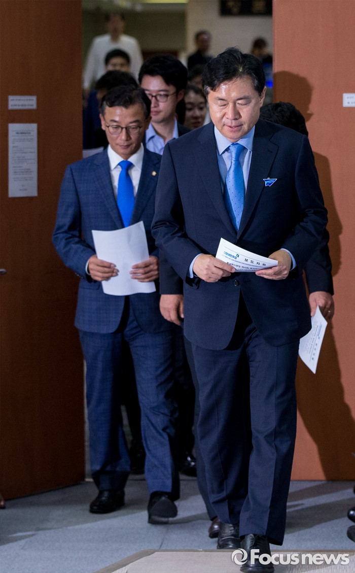 (서울=포커스뉴스) 더불어민주당 부산 지역 의원들이 21일 오후 영남권 신공항 결과 발표 관련 기자회견을 위해 서울 여의도 국회 정론관으로 발걸음을 옮기고 있다.
