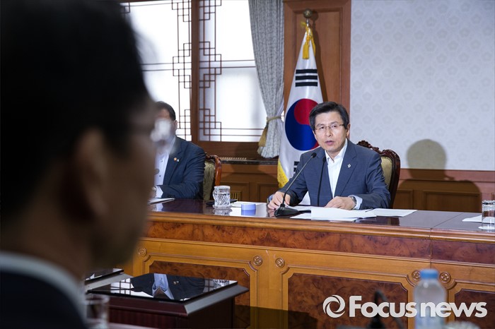 (서울=포커스뉴스) 22일 오전 서울 종로구 정부서울청사에서 열린 '신공항 후속조치 논의 관계장관회의에 참석한 황교안 국무총리가 모두발언하고 있다.