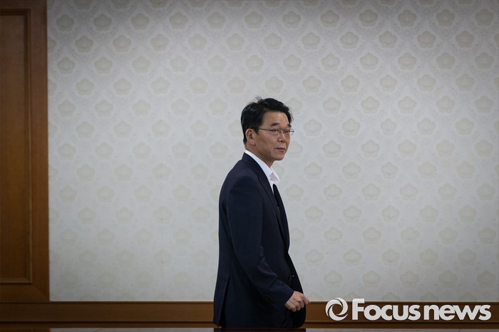 (서울=포커스뉴스) 22일 오전 서울 종로구 정부서울청사에서 강호인 국토교통부 장관이 '신공항 후속조치 논의 관계장관회의'에 참석하고 있다.