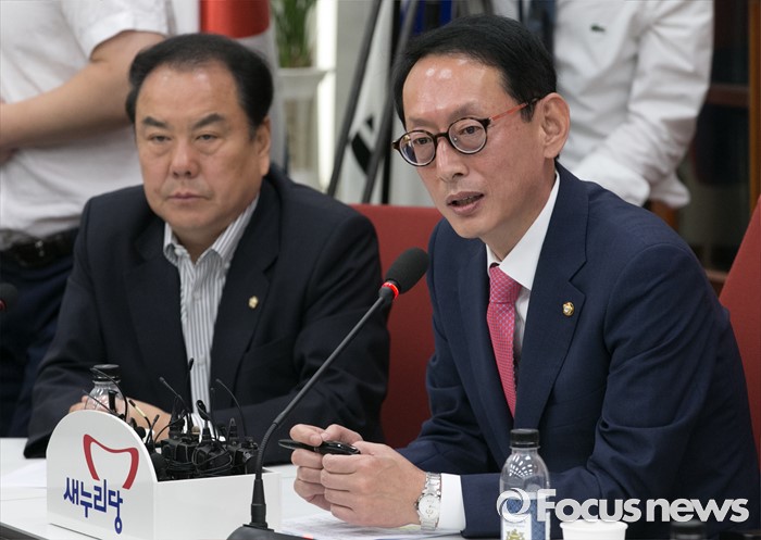 (서울=포커스뉴스) 22일 오전 서울 여의도 국회에서 열린 새누리당 신공항 관련 5개 시도 중진의원 간담회에 참석한 김도읍(오른쪽) 원내수석부대표가 발언하고 있다.
