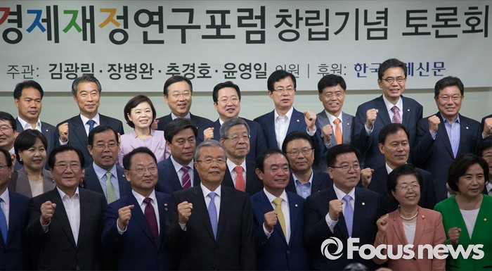 | △ 경제재정연구포럼에서 기념사진 찍는 의원들 |