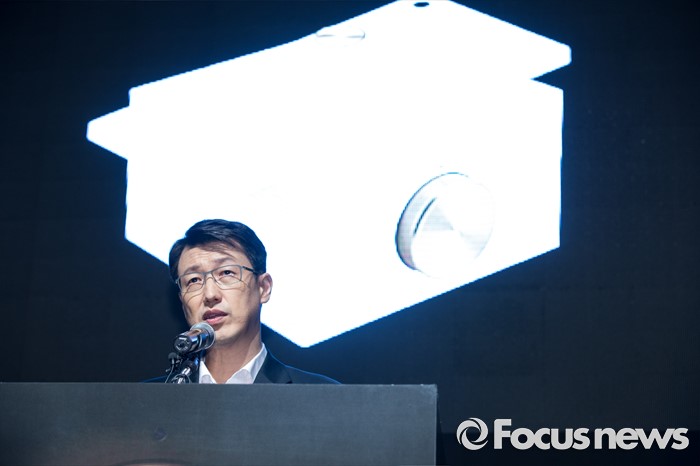 (서울=포커스뉴스) 22일 오전 서울 마포구 팬택 상암사옥에서 열린 'SKY, IM-100' 공개행사에 참석한 문지욱 팬택 사장이 기조 연설을 하고 있다.