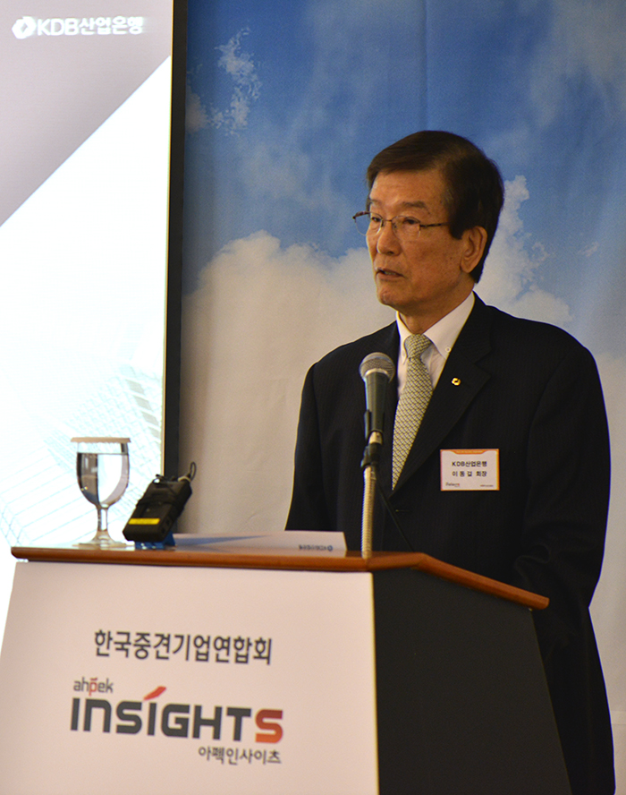 22일 서울 소공동 롯데호텔에서 열린 '제164회 아펙 인사이츠'에서 이동걸 회장은 '한국경제 발전을 위한 중견기업과 KDB의 역할'을 주제로 강연을 펼쳤다.