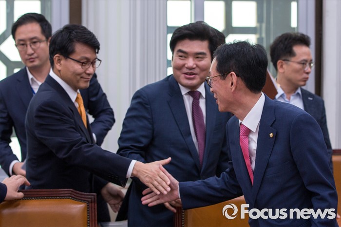 | △ 악수하는 김도읍 위원-윤상현 위원 |