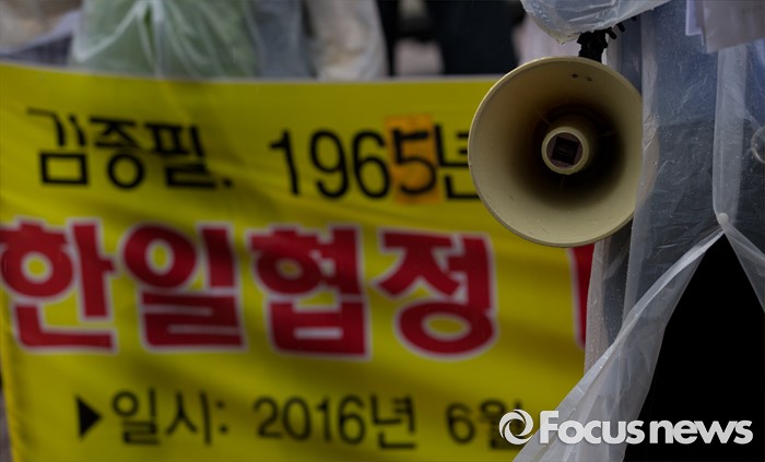 (서울=포커스뉴스) 22일 오후 서울 중구 신당동 김종필 전 총리 자택 앞에서 일제 강제동원희생자유가족협동조합 및 아시아태평양 전쟁희생자 한국유족회 회원들이 '한일협정 당시 일본외상 오히라 와 메모로 합의한 역사의 진실을 밝힐 것'을 촉구하고 있다.