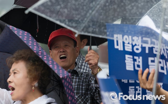 (서울=포커스뉴스) 22일 오후 서울 중구 신당동 김종필 전 총리 자택 앞에서 일제 강제동원희생자유가족협동조합 및 아시아태평양 전쟁희생자 한국유족회 회원들이 '한일협정 당시 일본외상 오히라 와 메모로 합의한 역사의 진실을 밝힐 것'을 촉구하고 있다.