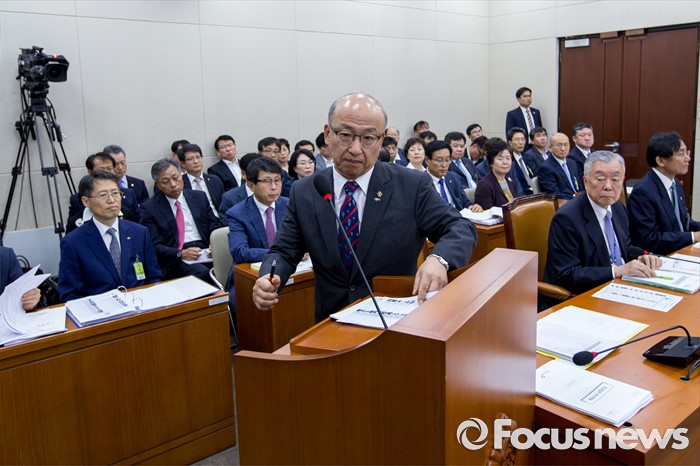 (서울=포커스뉴스) 문형표 국민연금공단 이사장이 22일 오후 서울 여의도 국회에서 열린 '보건복지위원회 전체회의'에 참석해 2015년 메르스 사태 당시 보건복지부 장관을 중간에 사퇴한 이유로 국정감사 출석에 불응한 것과 메르스 사태 미수습에 대해 사과 하기 위해 연단으로 이동하고 있다.