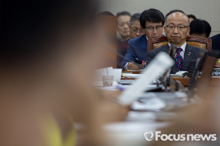 (서울=포커스뉴스) 문형표 국민연금공단 이사장이 22일 오후 서울 여의도 국회에서 열린 '보건복지위원회 전체회의'에 참석해 김상희 국회 보건복지위원회 더불어민주당 위원의 의사 발언을 듣고 있다. 이날 김 위원은 문 이사장에게 2015년 메르스 사태 당시 보건복지부 장관을 중간에 사퇴한 이유로 국정감사 출석에 불응한 것과 메르스 사태 미수습에 대해 사과할 것을 요구 했다.