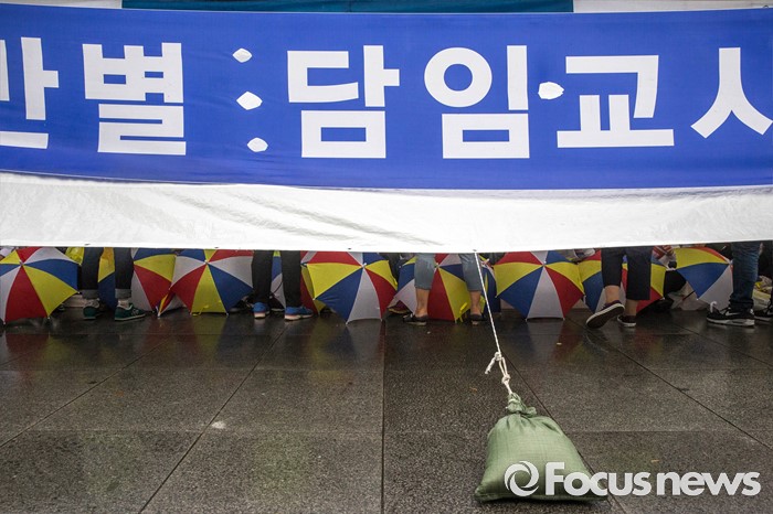 (서울=포커스뉴스) 22일 오후 서울 여의도 산업은행 본점 후문에서 한국가정어린이집연합회 비대위가 주최하는 '맞춤형 복지 시행 반대 단식 농성'이 열리고 있다.