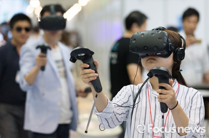 (고양=포커스뉴스) 22일 오후 경기 고양시 킨텍스 7홀에서 열린 2016 로보유니버스 & VR 서밋에 방문한 시민들이 VR 기기를 체험하고 있다.