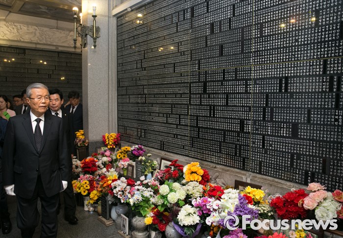 | △ 현충탑 위패봉안관 둘러보는 김종인 |