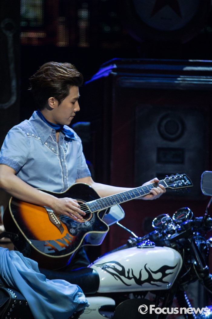 (서울=포커스뉴스) 22일 오후 서울 종로구 홍익대학고 대학로 아트센터에서 열린 뮤지컬 '올슉업' 프레스콜에 참여한 배우 김성규가 주요장면을 시연하고 있다.