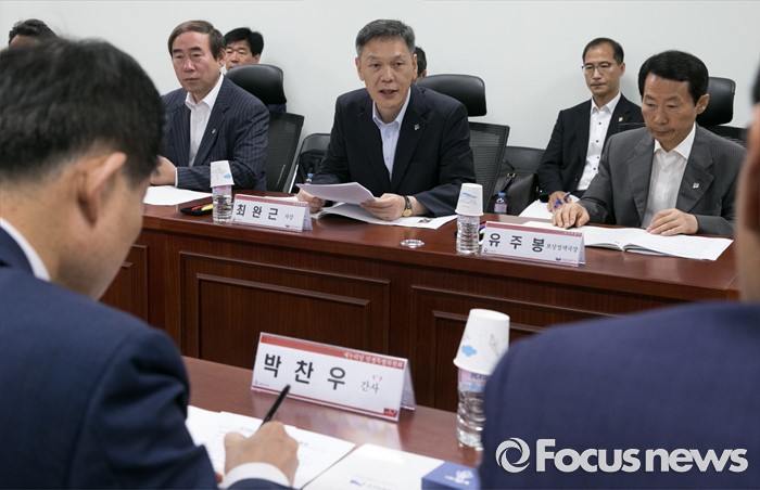 (서울=포커스뉴스) 23일 오전 서울 여의도 국회 의원회관에서 국가유공자 처우 개선 등 논의를 위해 열린 새누리당 민생혁신특별위원회-국가보훈처 간담회에 참석한 최완근 국가보훈처 차장이 인사말을 하고 있다.