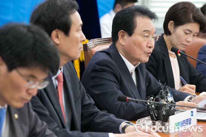 (서울=포커스뉴스) 변재일(오른쪽 두번째) 더불어민주당 정책위의장이 23일 오전 서울 여의도 국회에서 열린 정책조정회의에 참석해 모두발언을 하고 있다.