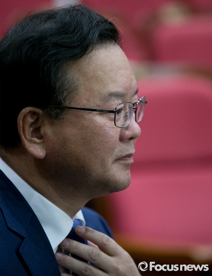 (서울=포커스뉴스) 전당대회 불출마를 선언하고 대권 도전을 시사한 김부겸 더불어민주당 의원이 23일 오전 서울 여의도 국회 의원회관에서 열린 대학생리더십 아카데미에 참석해 넥타이를 고쳐매고 있다.