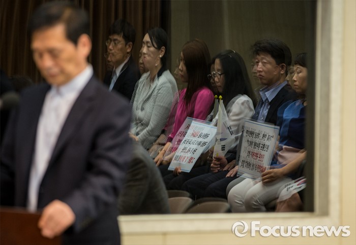 (서울=포커스뉴스) 23일 오전 서울 중구 프레스센터에서 열린 '12명 탈북민들을 사지로 내모는 민변 규탄 및 고발' 기자회견에서 탈북민단체연합 회원들이 민변을 규탄하는 손팻말을 들고 있다.