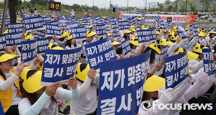 (세종=포커스뉴스) 23일 오전 세종시 정부세종청사 보건복지부 앞에서 충남민간어린이집연합회 회원들이 맞춤형보육 제도개선 및 시행연기 촉구 결의대회를 열고 있다.