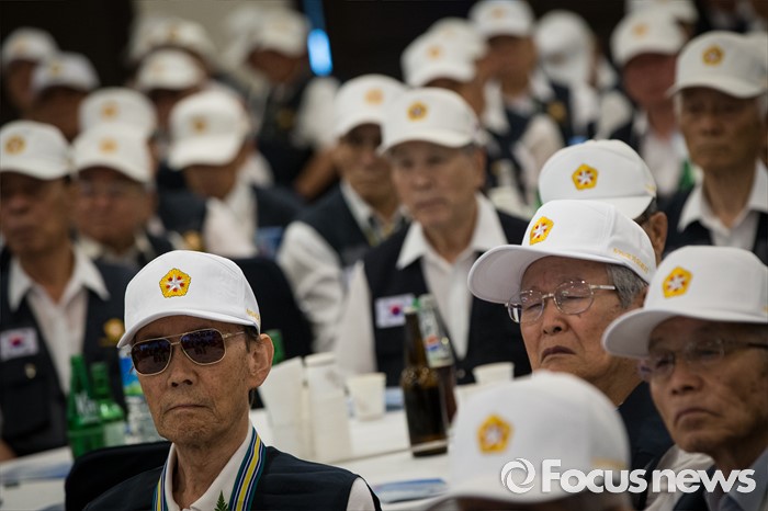 (서울=포커스뉴스) 23일 오전 서울 용산구 전쟁기념관 뮤지엄 웨딩홀에서 참전유공자들이 '6.25전쟁 참전유공자 위로연 및 호국영웅기장 전수식'에 참석하고 있다.