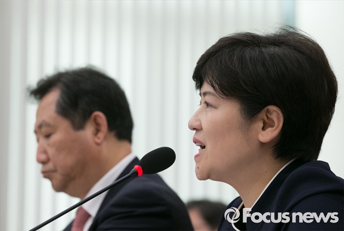 (서울=포커스뉴스) 23일 오전 서울 여의도 국회에서 열린 여성가족위원회 전체회의에 참석한 강은희 여성가족부 장관이 의원들의 질의에 답하고 있다.