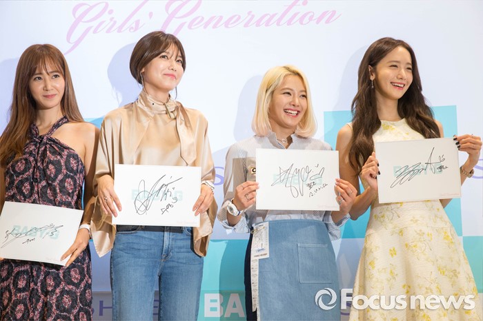 (서울=포커스뉴스) 23일 오후 서울 중구 롯데백화점 본점에서 CASIO의 여성 캐주얼 시계 브랜드 베이비지(BABY-G)의 뮤즈로 활동 중인 '소녀시대'가 새롭게 선보이는 'Beach Glamping' 시리즈 출시를 기념해서 열린 팬사인회에 참석, 취재진을 향해 포즈를 취하고 있다.